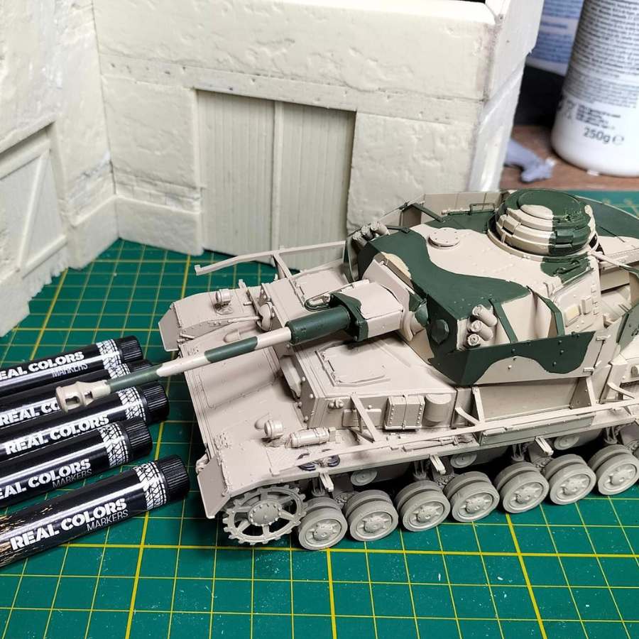 After curing, the diorama is painted and finished by hand, so that each figure, vehicle, and landscape element comes to life in minute detail.